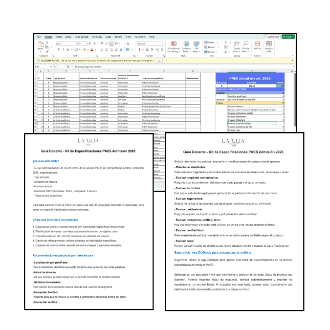 En la mayoría de los casos, el problema está en no ser capaz de detectar con precisión qué habilidad o tarea lectora es la que tus estudiantes tienen más descendida. El DEMRE no publica a qué habilidad y tarea lectora corresponde cada ítem de la prueba...esta Tabla de Especificaciones hace eso.
